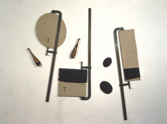 Acrylic on linen canvas, steel, objects