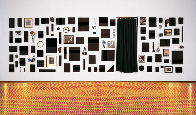 Cameras 1996, 79 x 252 inches - 201 x 651 cm Silver gelatine, padded fabric, cameras, objects Prov.: John Helman Gallery, New York, 2000 - The Museum of Contemparary Photography, Chicago, 2001 Property of the Artist, New York, USA photo John Helman, New York, USA