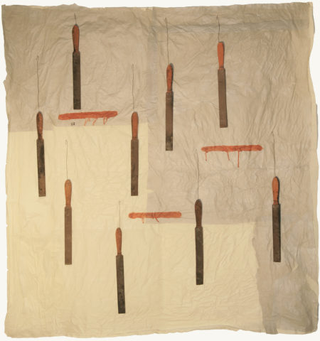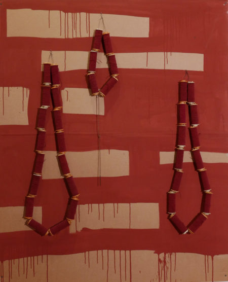 Fabric and objects, 2021, 70 x 92 ½ inches, 175 x 231 cm