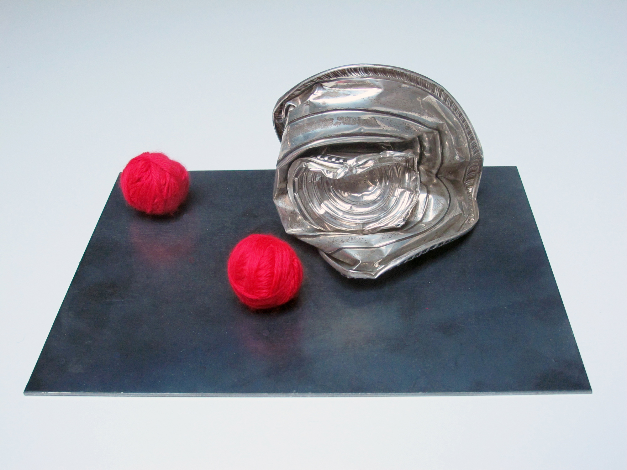 Wool thread and sterling on steel plate