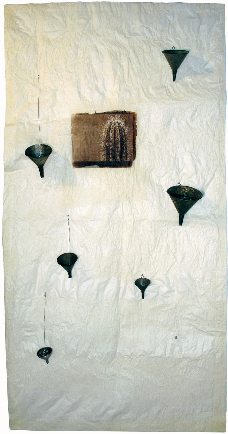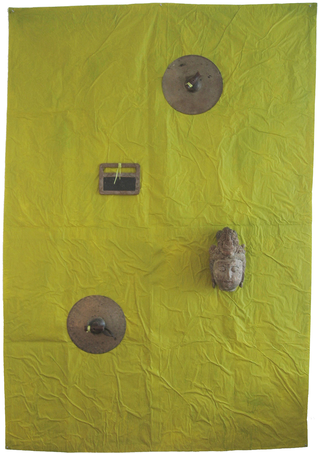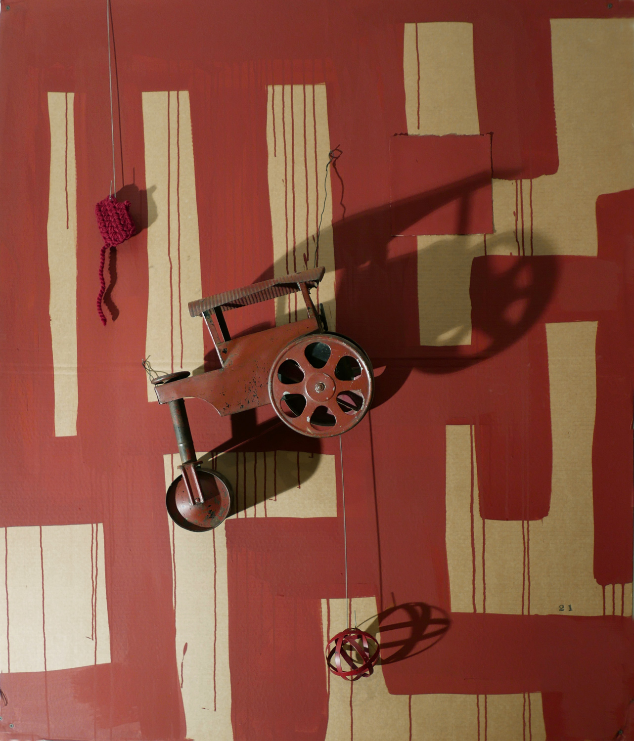 Acrylic on paper, cotton thread, tempera, wooden hammers